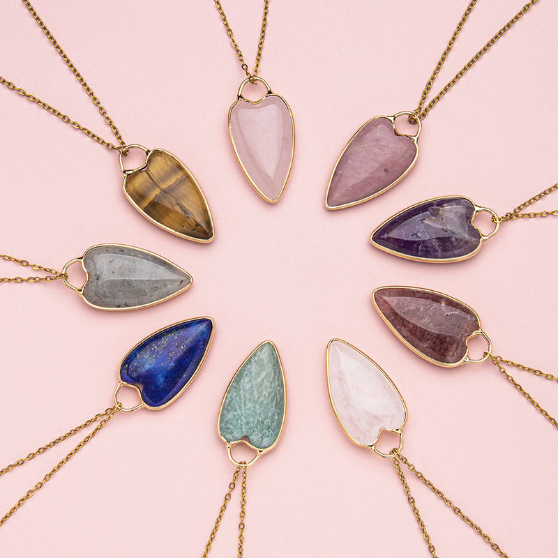 | Stones | Amazonite, Amethyst, Clear Quartz, Labradorite, Lapis Lazuli, Rhodochrosite, Rose Quartz, Strawberry Quartz, Tiger Eye |
