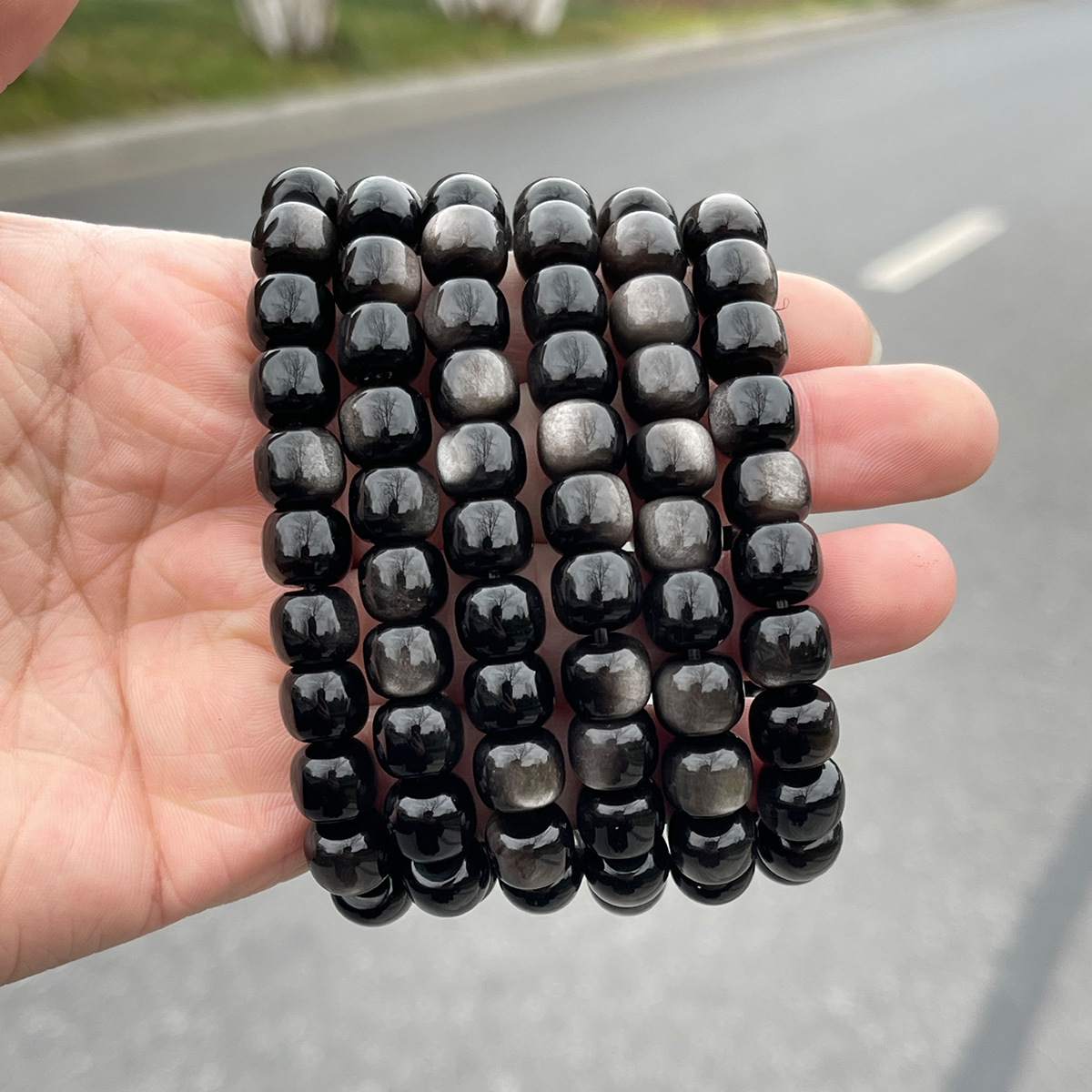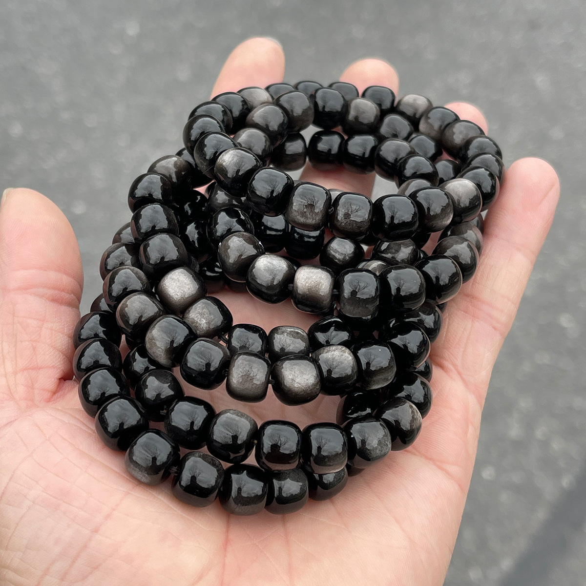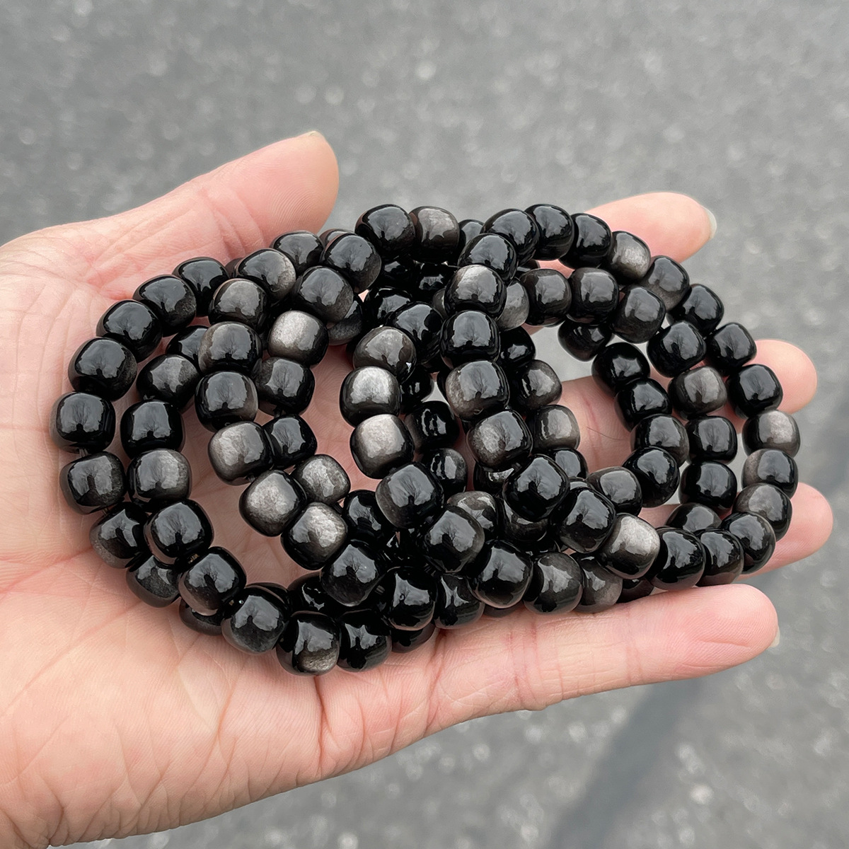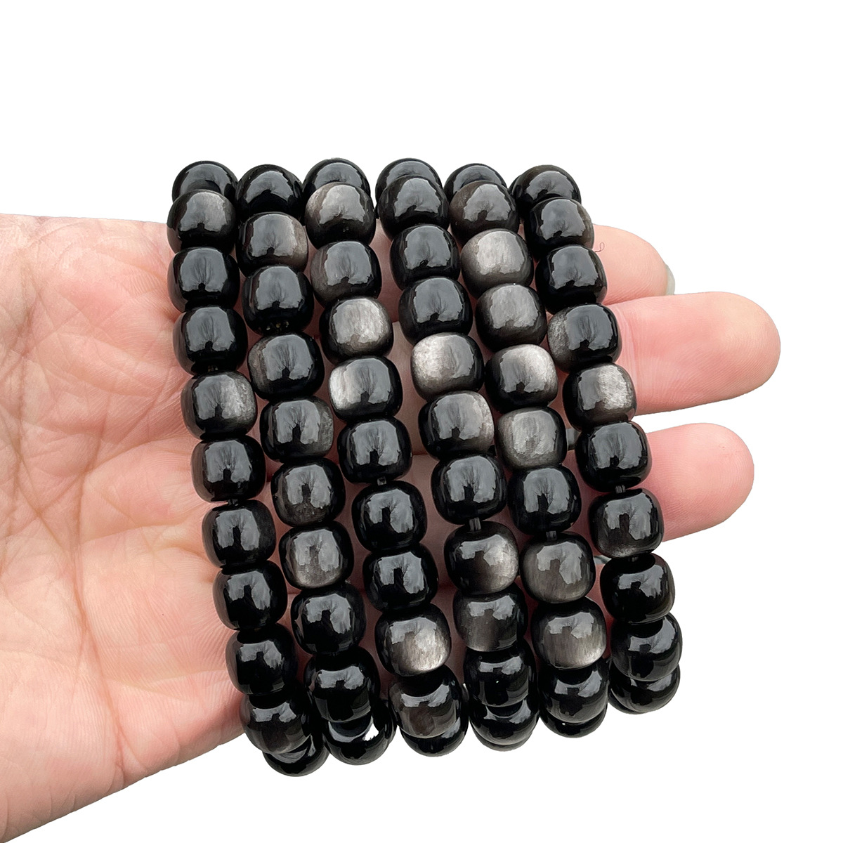 8A Silver Obsidian Old Shape Beads